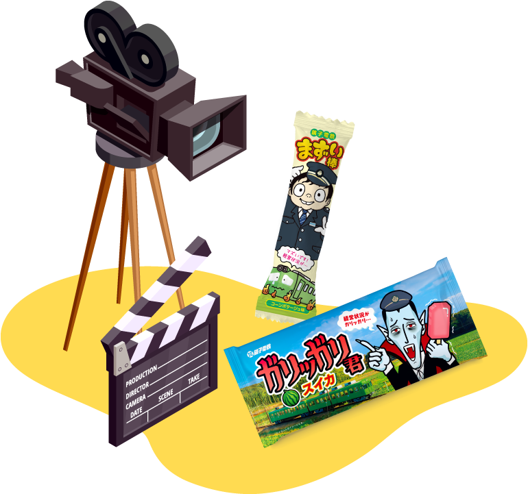 当初は映画「電車を止めるな!」のスピンオフ映画の劇中に登場する幻の氷菓の予定だったが製品化に踏み切る。
